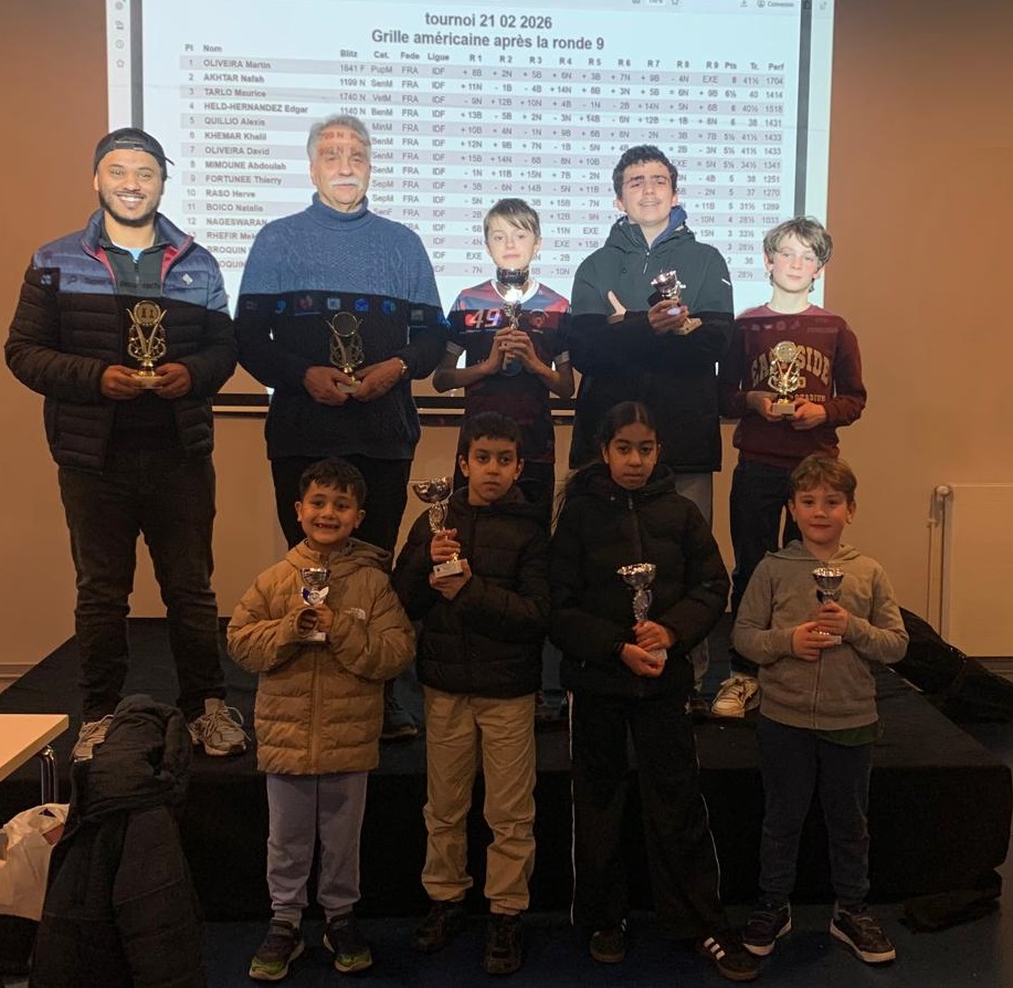 L’événement a été orchestré avec brio par l’équipe fidèle du club. Kamel était aux commandes des tirages au sort, assurant la fluidité des appariements, tandis que Karim et Sarah, nos dévoués animateurs, accompagnaient avec bienveillance les plus petits dans leurs premiers pas en compétition.